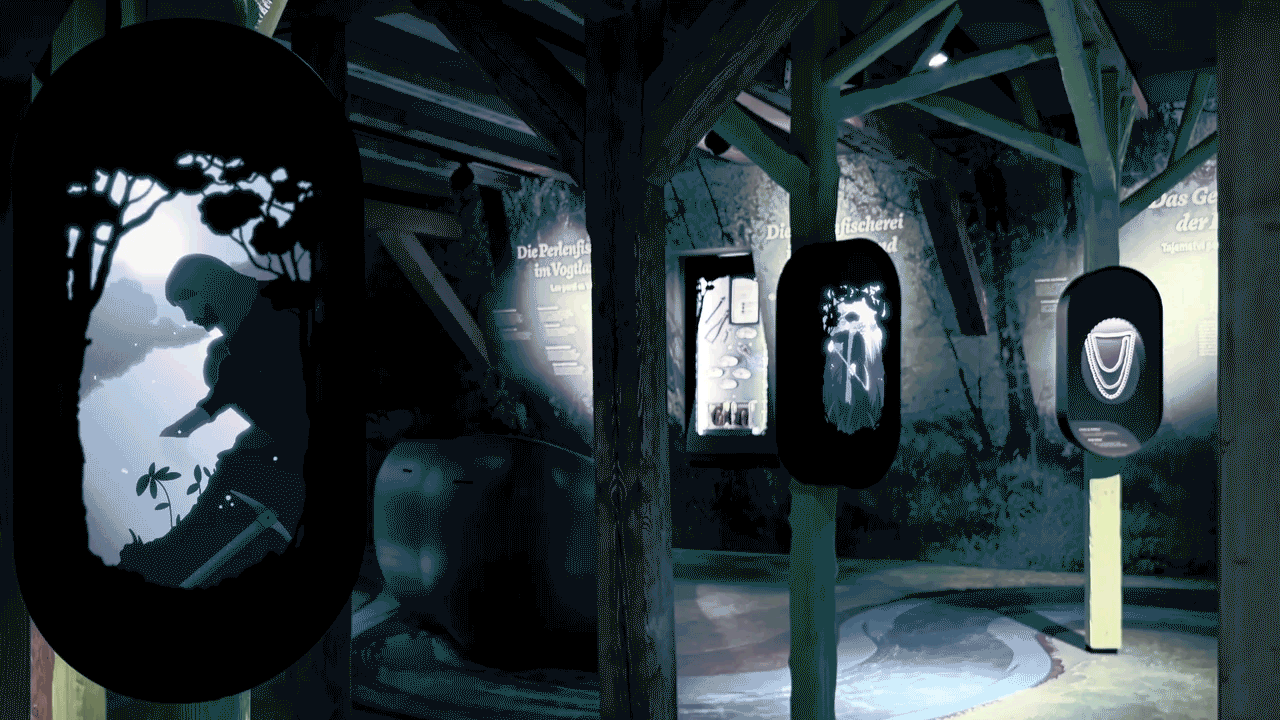 Narrative driven animation for a permanent exhibition exploring the life cycle, decline, and reintroduction of freshwater pearl mussels. The work included a large-scale gable projection combining storytelling, infographics, and sound to create an immersive experience.