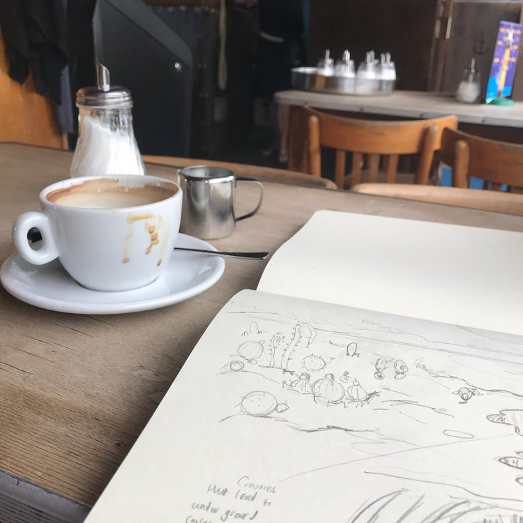 Starting points. I began with listening to the track on loop and did my initial sketches like any other good creator - with a cup of coffee.